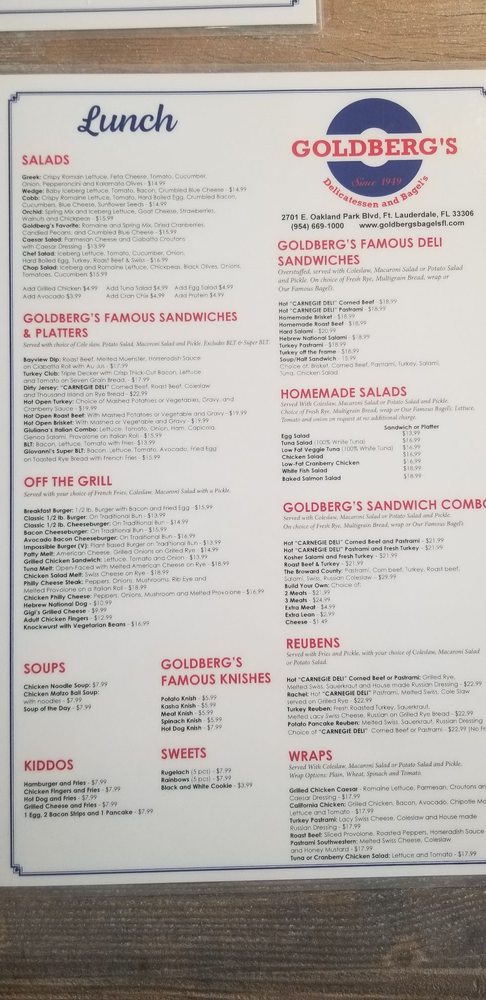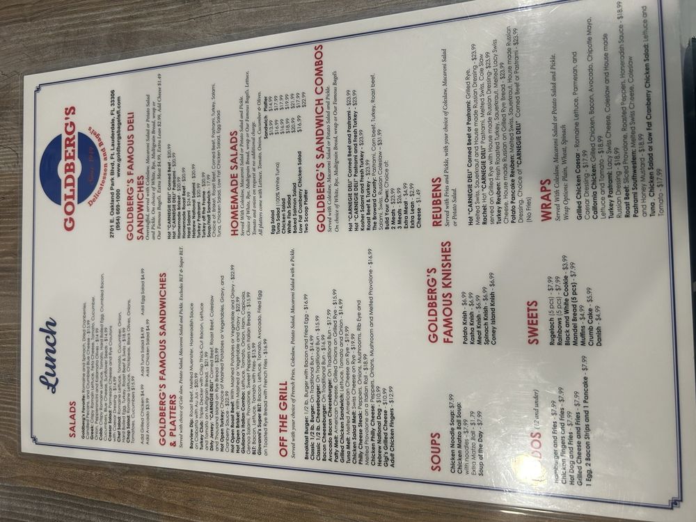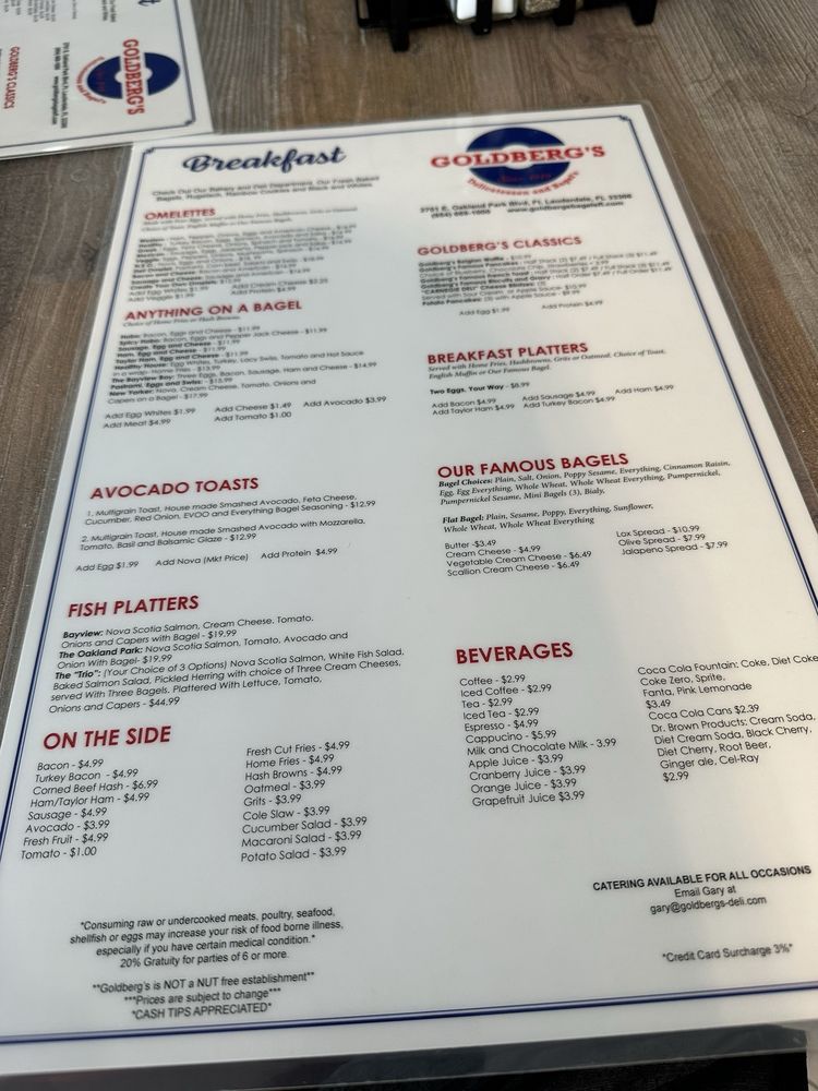 Goldberg's Deli & Bagel's, located in Fort Lauderdale, FL, is a must-visit spot for bagel lovers and brunch enthusiasts. With a variety of menu items ranging from Nova Lox bagels to pastrami sandwiches, this deli offers a delicious and satisfying dining experience. Customers rave about the generous portions, flavorful dishes, and friendly staff. The cozy atmosphere and impeccable restroom add to the overall welcoming vibe of the restaurant. Whether you're dining in or getting takeout, Goldberg's Deli & Bagel's delivers on quality and taste. Don't miss out on their Everything Flat Bagel with sausage, egg, and Muenster cheese – it's a heavenly combination that will keep you coming back for more. Experience the best bagels in town at Goldberg's Deli & Bagel's.